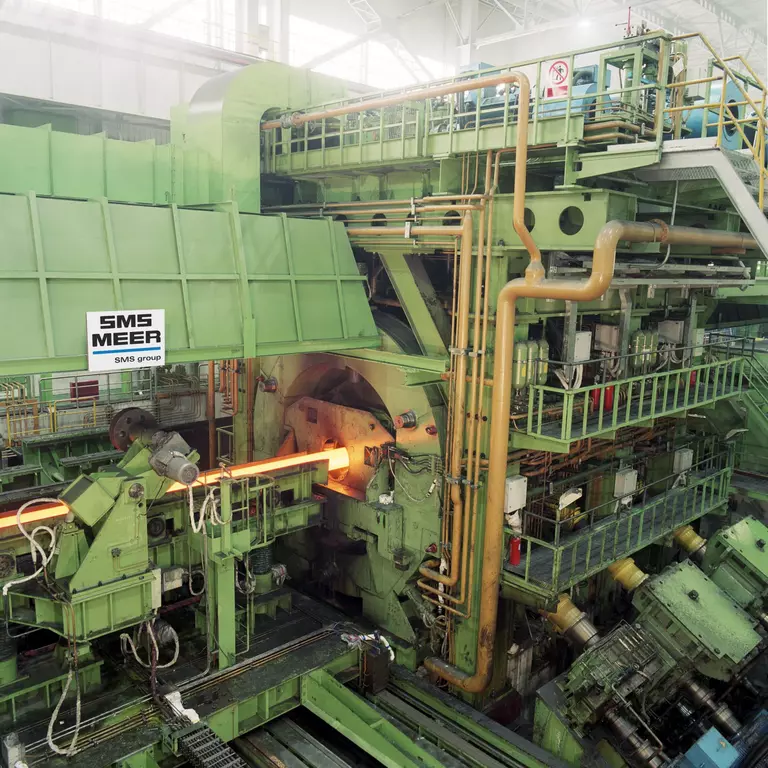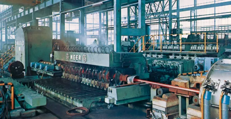 Das Nahtlos-Rohrs ist bis heute untrennbar mit dem Namen „Mannesmann“ verbunden. 1885 präsentieren die Brüder Reinhard und Max Mannesmann ihre Kombination aus Schräg- und Pilgerwalzen und machen damit die Herstellung nahtloser Rohre möglich. 1923 liefert die Maschinenfabrik Meer ihr erstes Nahtlos-Rohrwalzwerk. Von 1926 bis 1999 ist die „Meer“ Teil des Mannesmann-Konzerns und damit unmittelbar an der Weiterentwicklung und Perfektionierung der Rohrherstellung beteiligt.