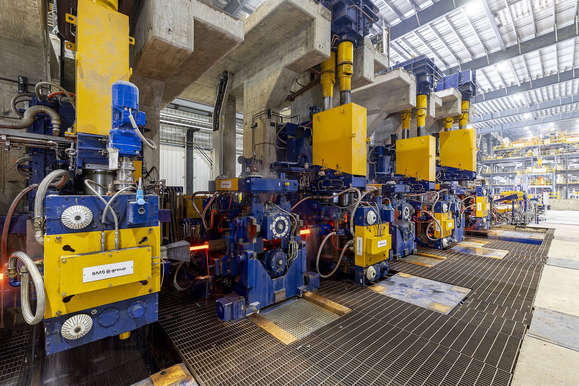 Hybar’s rolling mill is equipped with fourteen housing-less stands and an eight-pass MEERdrive® high-speed finishing block. MEERdrive® technology reduces roll ring inventory by 60% compared to conventional finishing blocks, thanks to its flexible gear ratio selection. Its individual drive concept lowers energy consumption and operating costs by approximately 30%. Additionally, the MEERarms ring-changing system enables module changes in just 10 minutes, further improving operational efficiency. The "one-family-rolling" concept sequence also optimizes production, reducing downtime and energy usage. SMS group’s quenching and soft cooling TMbaR® thermo-processing systems are also incorporated into the mill.
