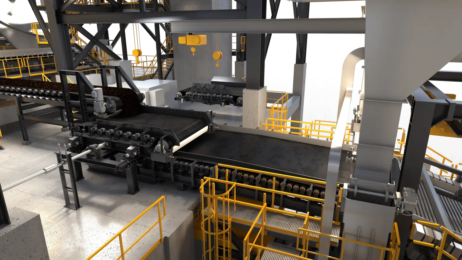SMS group provides tailored conveyor solutions for traveling grate pellet plants to optimize pellet handling and distribution on the induration grate and ensure so the productivity and performance of the overall pelletizing process. Our portfolio includes the shuttling spreader conveyor for compact plants with straight layouts, ensuring uniform green pellet feed; the collecting belt conveyor with reciprocating head for large-capacity plants with 90° arrangements; and the wide belt conveyor for gentle pellet transfer. Additionally, we offer specialized conveyors for managing under- and oversize pellets at screening and furnace feeding areas. Engineered for durability and precision, these systems enhance operational reliability, reduce downtime, and comply with global safety standards.