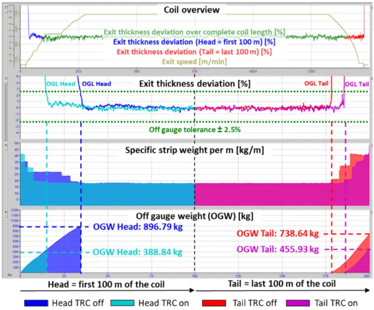 Example of yield-lost calculation for head and tail of finishing run for a 2-stand cold rolling mill