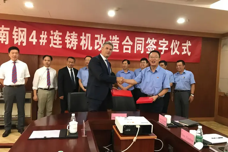 Nanjing Iron and Steel Group Co., Ltd., a leading Chinese steel producer with approximately ten million tons of steel produced per annum, has awarded SMS Concast AG an order to upgrade the four strands of continuous caster CCM4 at its Nanjing plant No. 2. The targets of the project are to improve product quality and productivity and also to increase flexibility in the processing of a vast steel grade portfolio and to reach an annual production of more than 800,000 tons of blooms.