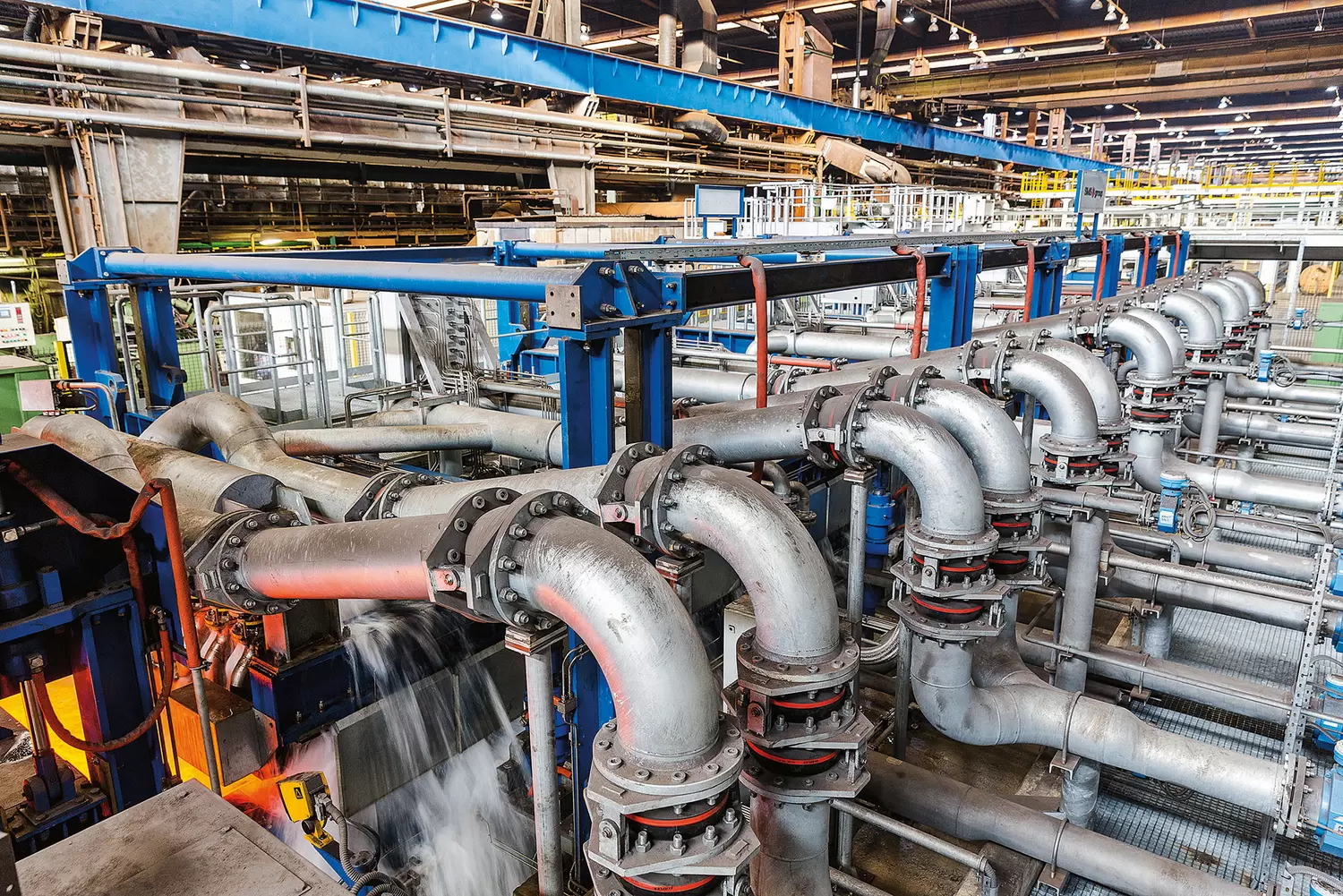 The key process to set material properties is cooling. Laminar cooling systems with U-shaped pipes have been widely used in heavy-plate mills since the 1950s. But when material advancement required ever higher cooling rates and more flexible cooling patterns, this prompted the development of spray cooling systems with pinch rolls. At the beginning of the new millenium, this technology, usually a combination of spray and laminar cooling, became state-of-the-art.
