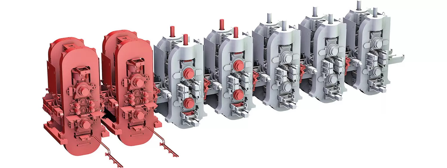 The upgrade focuses on the finishing mill of the plant, which was commissioned in 1967, and comprises the installation of new finishing stands F1 and F2 as well as modifications to boost the rolling forces of mill stands F3 and F4 plus the integration of hydraulic loopers throughout the complete finishing mill. In the recent past, SMS group already strengthened the drive trains of mill stands F1 to F3 by installing new main and mill pinion gear units and powerful SIEFLEX® HT spindles (high torque spindles) and supplied a new profile, contour and flatness control system (PCFC®) for the finishing mill.
