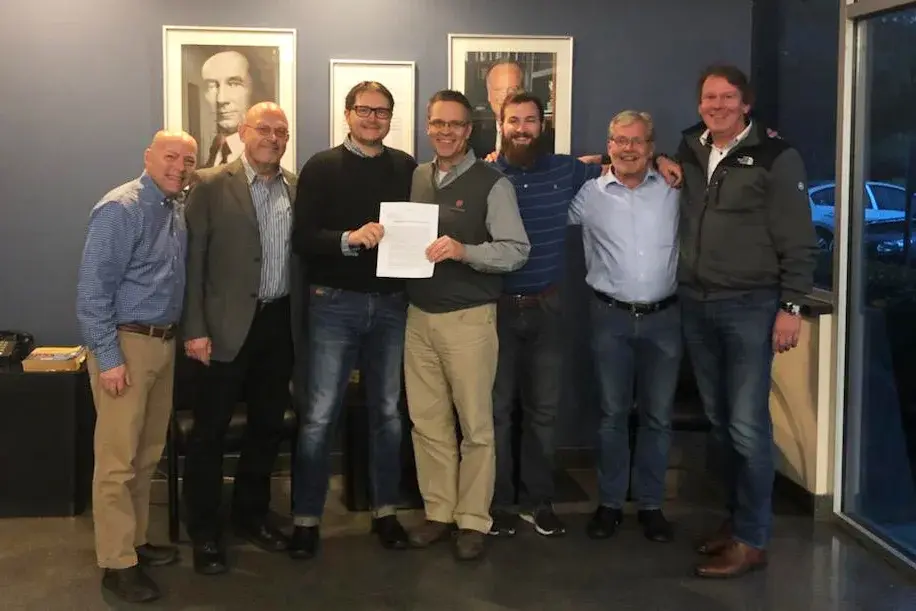 The teams of AMERICAN SpiralWeld Pipe and SMS group after contract signing.