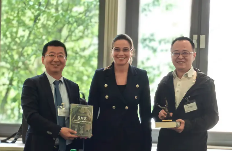 From left to right: Mr. Li Zhengzhou / President of Zhejiang Jiuli Hi-Tech Metals Co., Ltd., Prof. Dr. Ing. Katja Windt / Member of the Managing Board (CDO) of SMS group GmbH, Mr. Zhang Yuxu / President & GM of Jiuli Group.