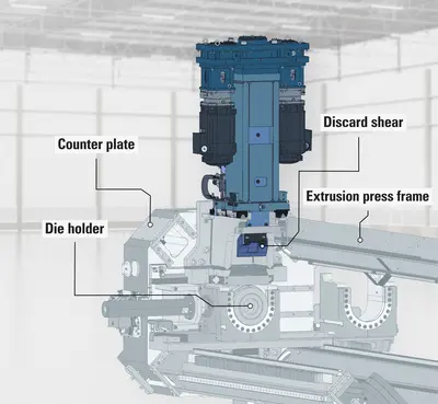 The new HybrEx® line, engineered to Hydro’s high operational standards, features the innovative HybrEx® press and the patented electric scrap shear, which are designed to significantly enhance production efficiency, operational safety, and sustainability in the production of extruded profiles.