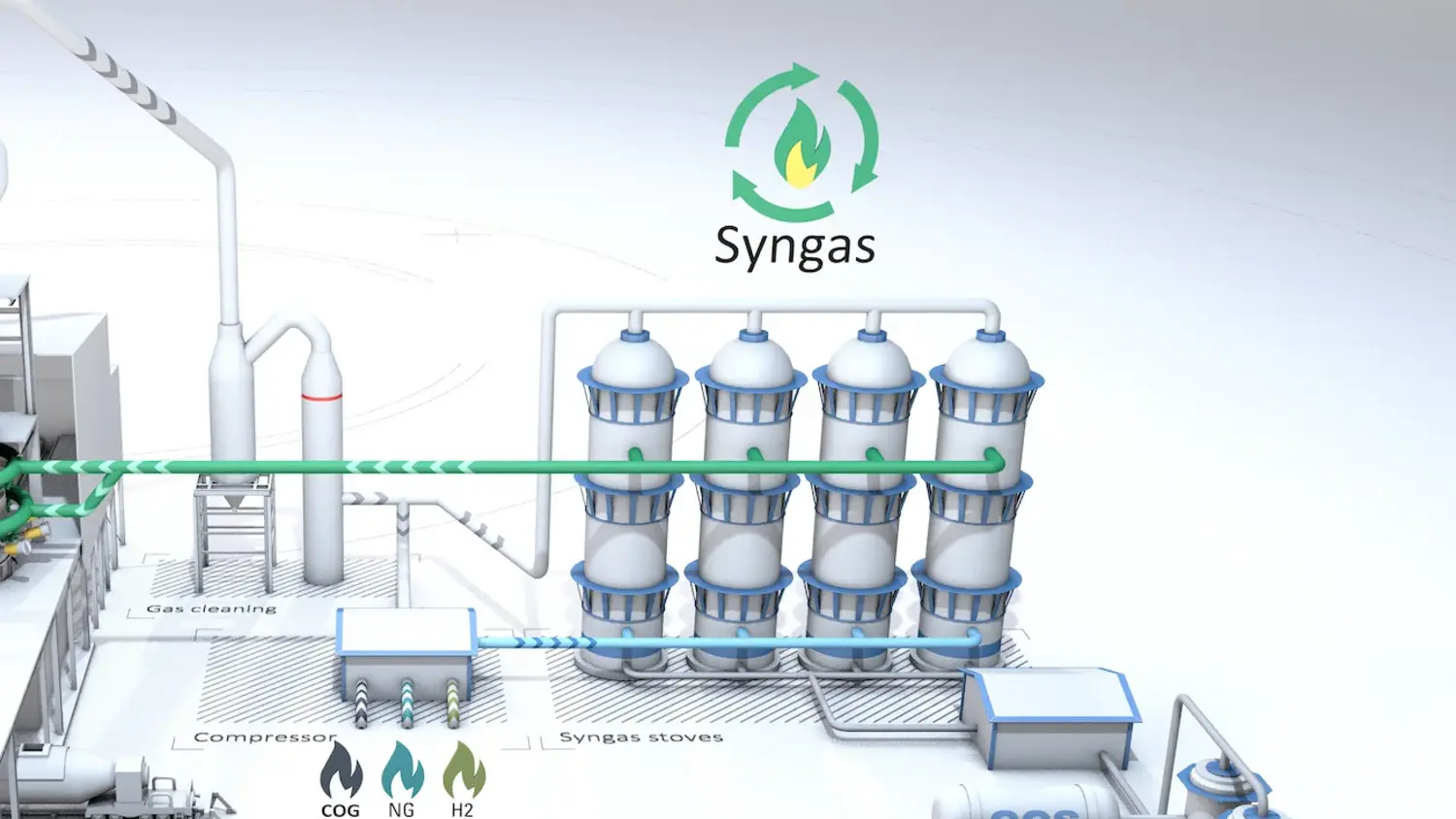 合成气在风口引入,这种创新方法有别于传统方法,具有技术独创性和灵活性,可将氢气纳入还原气体成分。在这种情况下,氢气的利用效率非常高,因为高温合成气生产技术可以获得非常高的温度,可以使用大比例的氢气快速还原铁矿石。