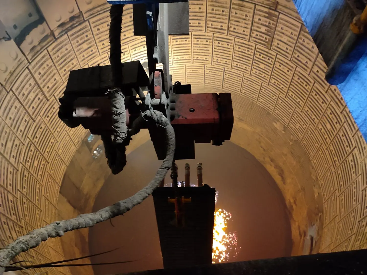 在这些短暂休风期间内进行冷却壁更换,无需操作人员进入高炉内部工作。炉料就降低到底层以下,铜冷却壁通过专门定制的安装工具从外部移除,这些工具为特别定制并适用于高炉的几何结构。